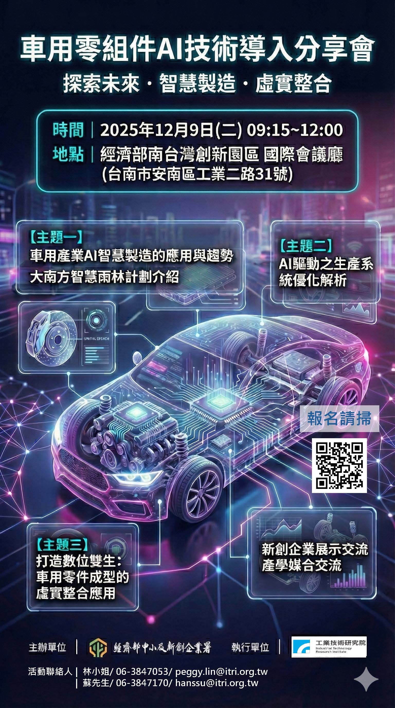 活動聯絡人 | 林小姐 / 06-3847053 / peggy.lin@itri.org.tw