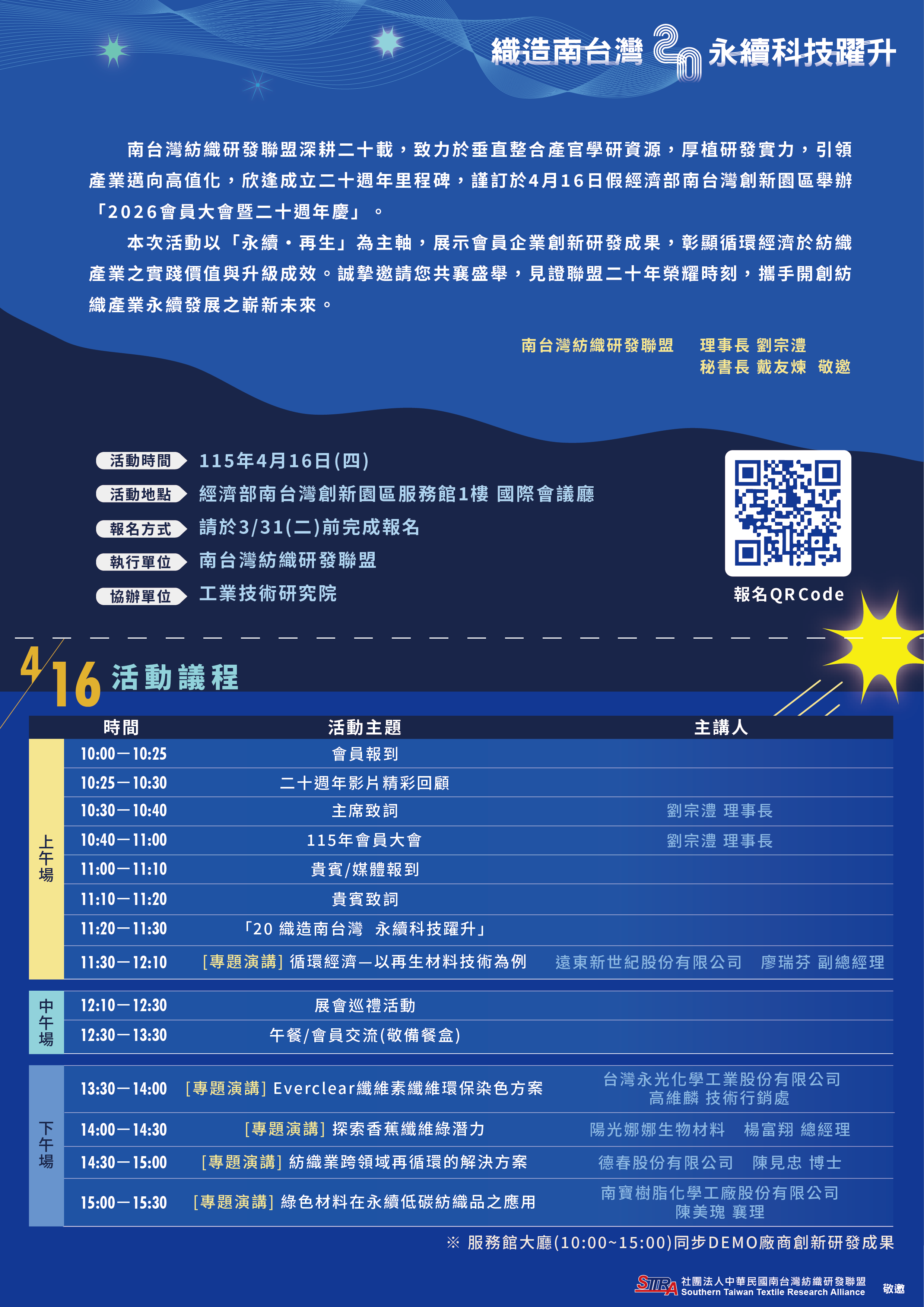 【園區活動】📢 【廿載深耕 ‧ 織造未來】南台灣紡織研發聯盟 20 週年慶典即將登場!